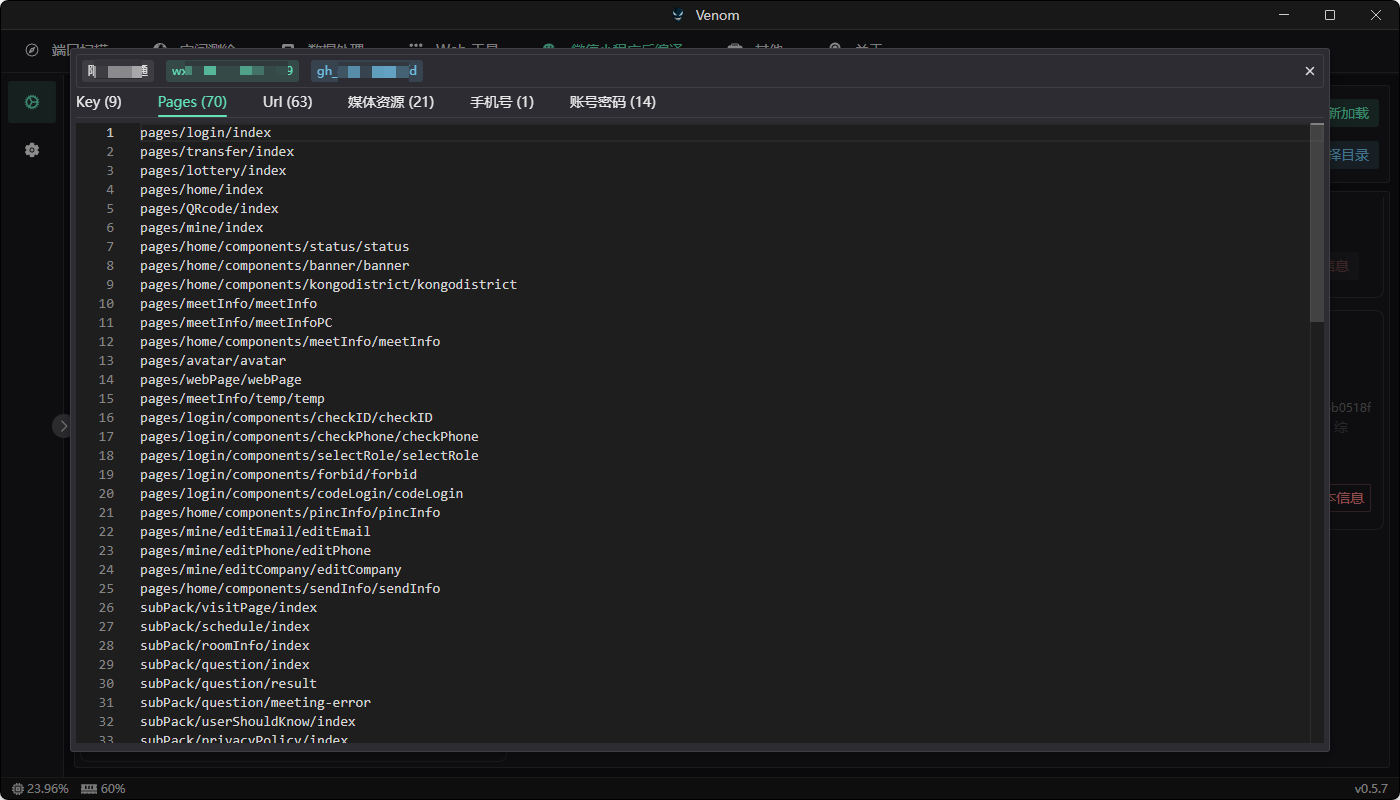 Wxapkg 逆向:拖入小程序包即可自动解包。系统会自动解析目录结构,提取 app-service.js 等核心源码 。