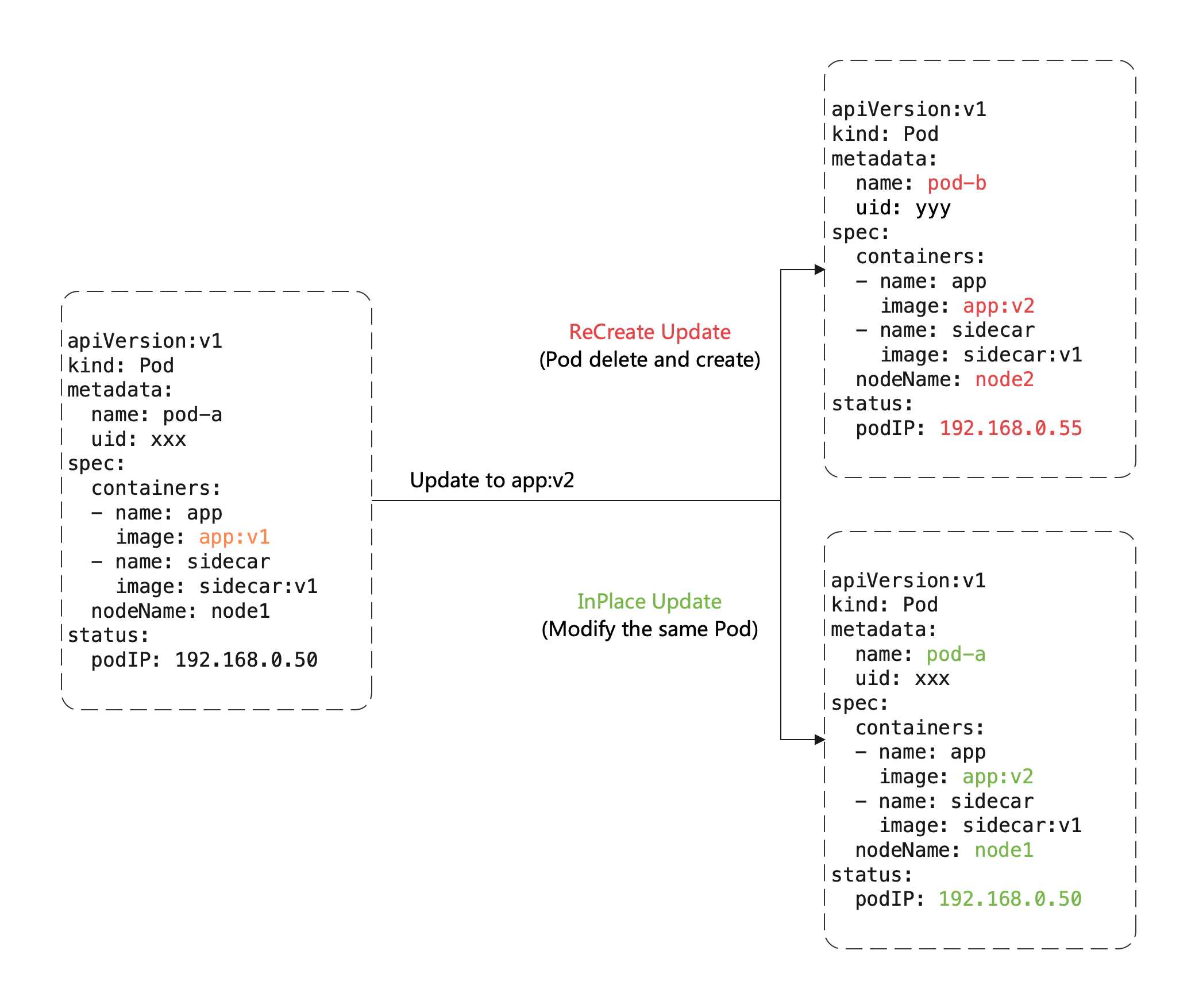 - RoleBasedGroup:支持原地更新(In-place Update),更新镜像时只重启容器而不重建 Pod,避免重新调度和 IP 变化,同时保留本地已加载的模型和 KV Cache。