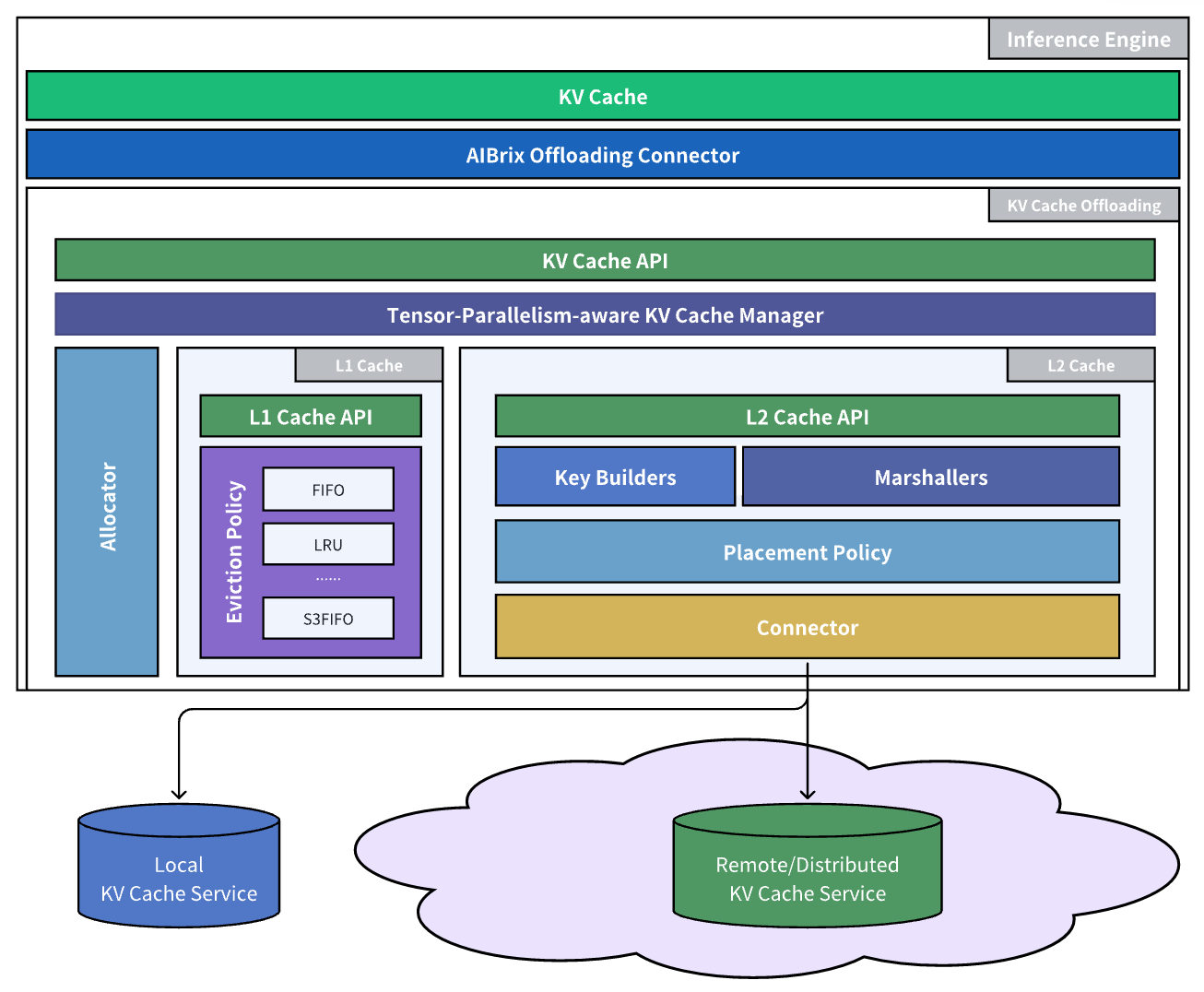 - AiBrix:提供 OpenAI 兼容的 Batch API 实现离线批量推理,以及分布式 KV Cache Pool 支持跨实例的 KV Cache 共享与复用。