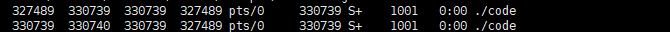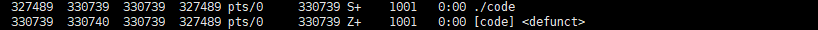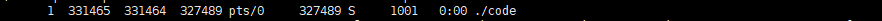 while :;为无限循环,返回真,ps ajx显示所有进程信息,grep code过滤出包含code的行,grep -v grep排除掉刚执行的grep命令自身,每1s执行一次循环,结果如下: