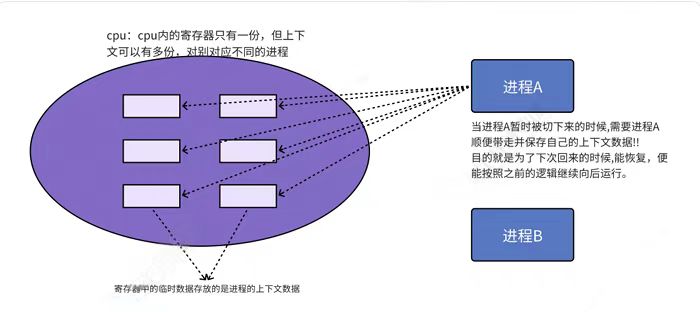 上下文数据:进程执行时处理器的寄存器中的数据。