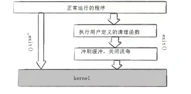 return则是一种更常见的退出进程方法,执行return n等同于执行exit(n),因为调用main的运行时函数会将main的返回值当作exit的参数。