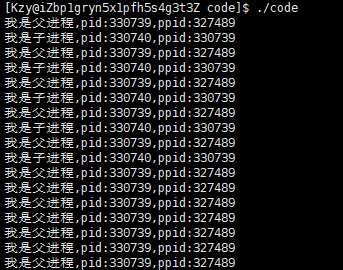 printf("我是子进程,pid:%d,ppid:%d\n",getpid(),getppid());