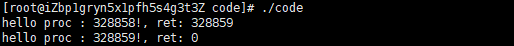 printf("hello proc : %d!, ret: %d\n", getpid(), ret);