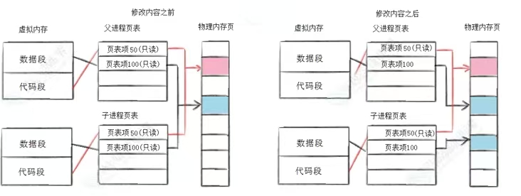 时拷贝,父子进程从fork返回的那一刻开始,同时监听返回结果,当一个进程调用fork之后,就有两个二进制代码相同的进程,即父子进程,它们都运行到相同的地方,但执行不同的代码路径,fork之前父进程独立执行,fork之后,父子两个执行流分别执行。