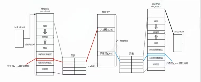 通过系统调用fork可以创建子进程,当程序调用fork后,内核会生成子进程,并分配新的内存块和内核数据结构给子进程,将子进程添加到系统进程列表当中,该子进程是原进程的一个副本,子进程会复制其父进程的相关数据和代码,父子进程代码共享,数据各自开辟空间,私有一份,采用写