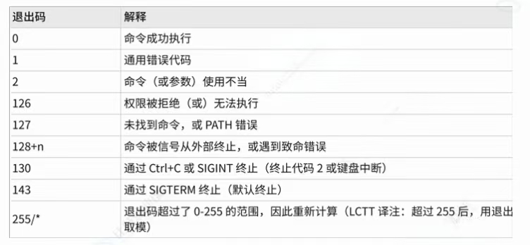 退出码可以得知最后一次执行命令的状态,命令结束以后,可以知道命令是成功完成的还是以错误结束的,程序返回退出代码0时表示执行成功,代码 1 和 0 以外的任何代码都视为不成功。