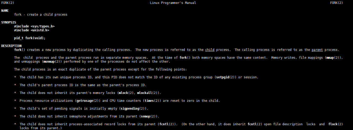 fork有一个非常重要的特性:调用一次,返回两次,在子进程中,fork返回0,在父进程中,fork返回子进程的PID(PID>0),若出错,则fork返回-1,fork之后通常要用if进行分流,通过fork返回值,就能区分父子进程