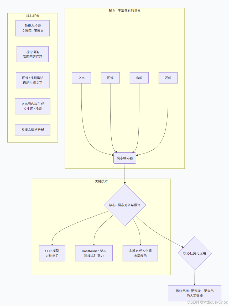 模态编码:首先,需要用不同的神经网络(编码器)将不同模态的数据转化为计算机能理解的向量表示。