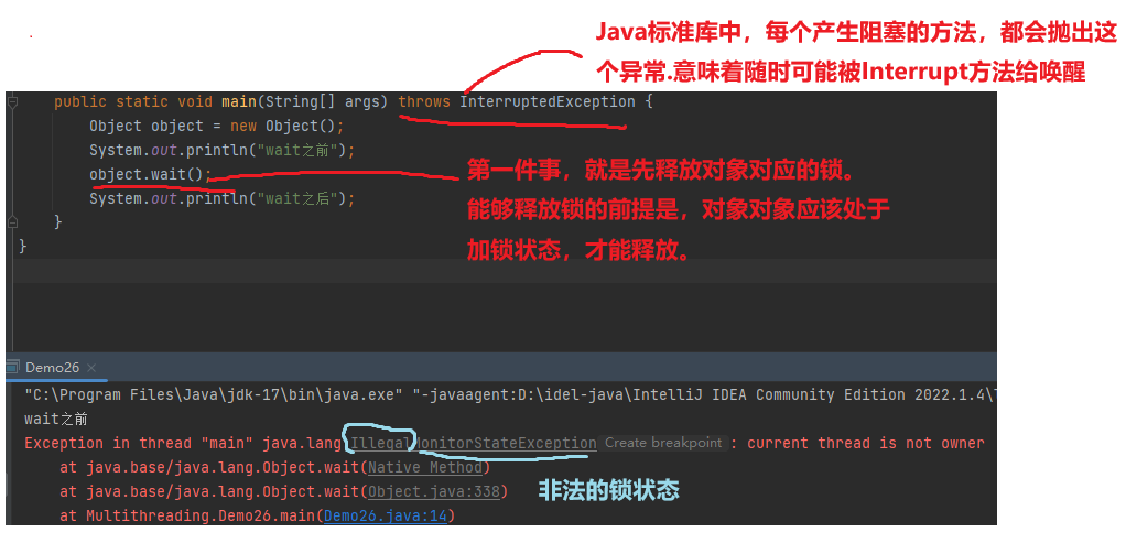 要求synchronized的锁对象必须和wait 的对象是同一个