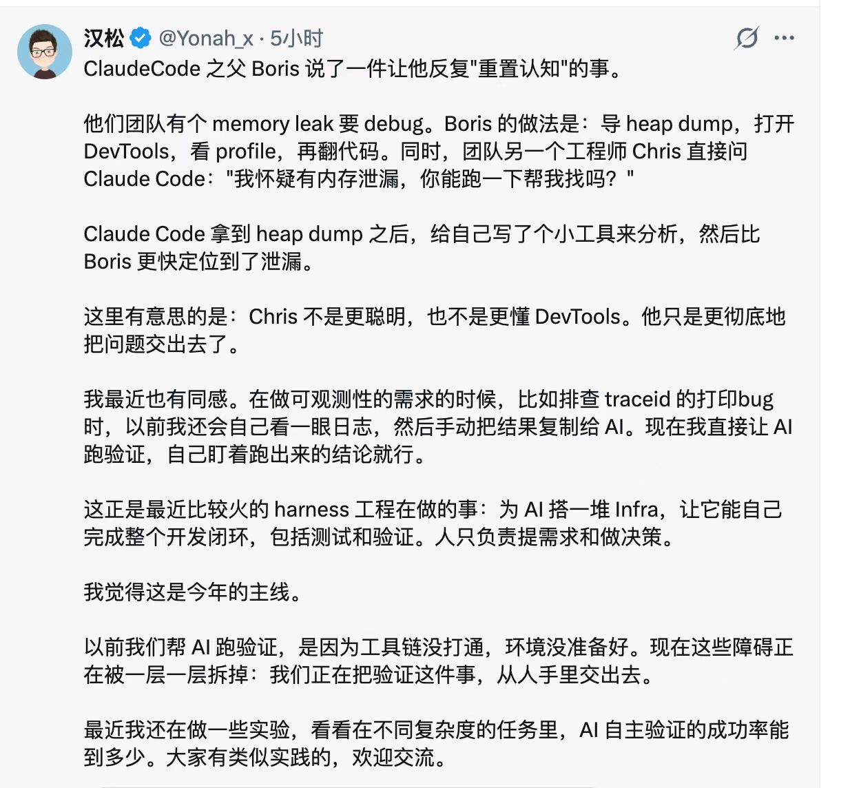 实际上遭遇并独立解决错误,是职业技能形成的关键闭环,而现在我们甚至连文章都懒得看,视频也是,都是直接 @AI 总结,碎片化上继续碎片化,那人在 AI 存在的这个闭环里,难道真的就只剩下背锅?