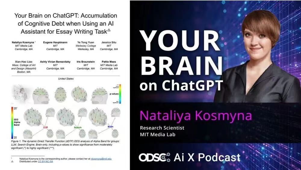 就像有人说,我们正在牺牲思维的深度,去交换越来越快的 AI 速度…这是 MIT 教授的研究发现,过度依赖AI完成任务的人,大脑活动显著减少,创造力和记忆力双双下滑,甚至有人已经成为「被AI训练的人」,答题、写作风格也越来越 AI 相似。