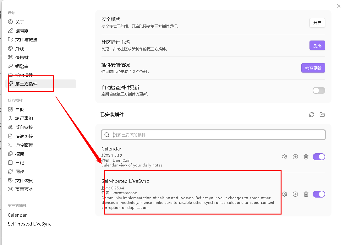 1、下载第三方插件Self-hosted LiveSync