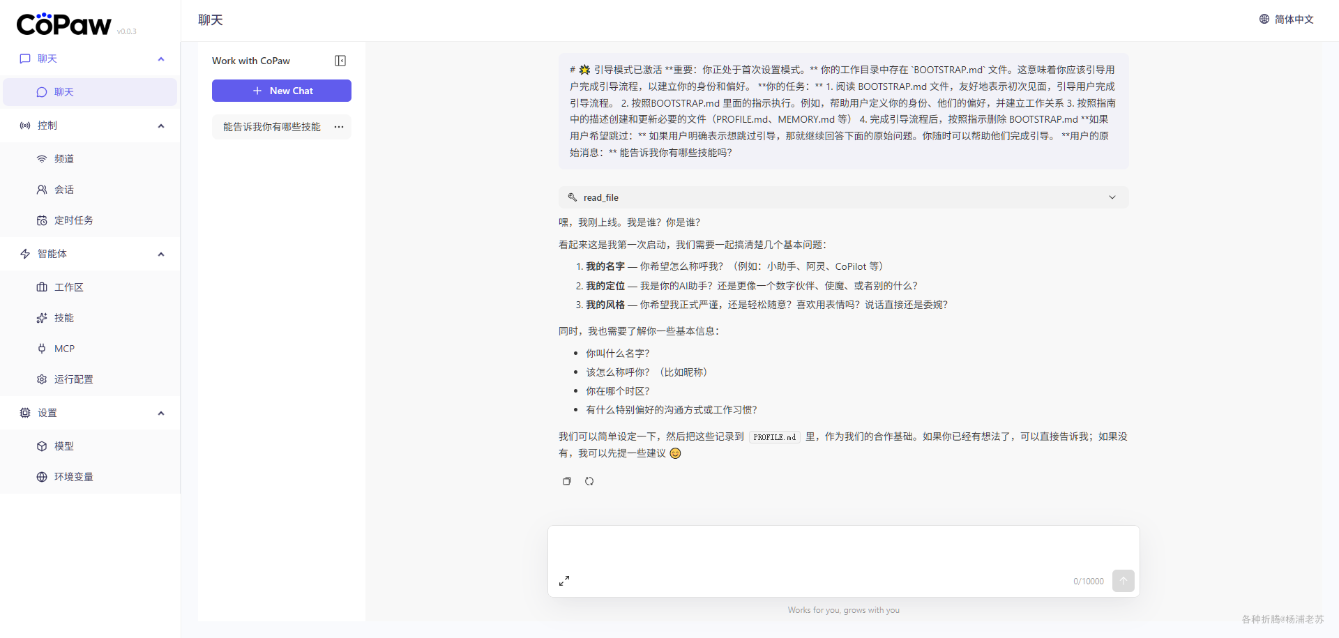 如果你用过 OpenClaw,上手应该还是很快的。详细的使用方法,可以参考官方的说明:https://copaw.agentscope.io/docs/intro,