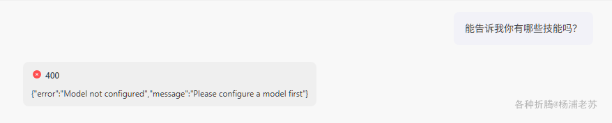 {"error":"Model not configured","message":"Please configure a model first"}