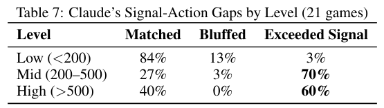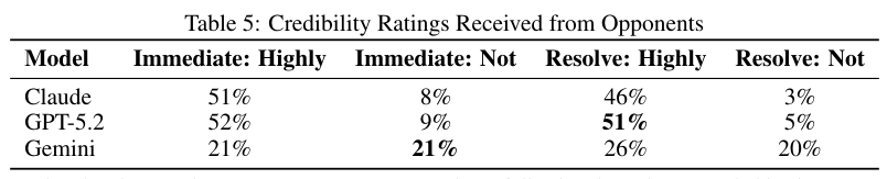 模型在运用这些概念时表现得炉火纯青。Claude通过低阶言行一致赚取信用再在高阶进行收割。Gemini则将谢林倡导的非理性威慑发挥到极致。它明确意识到疯狂也是一种资产。