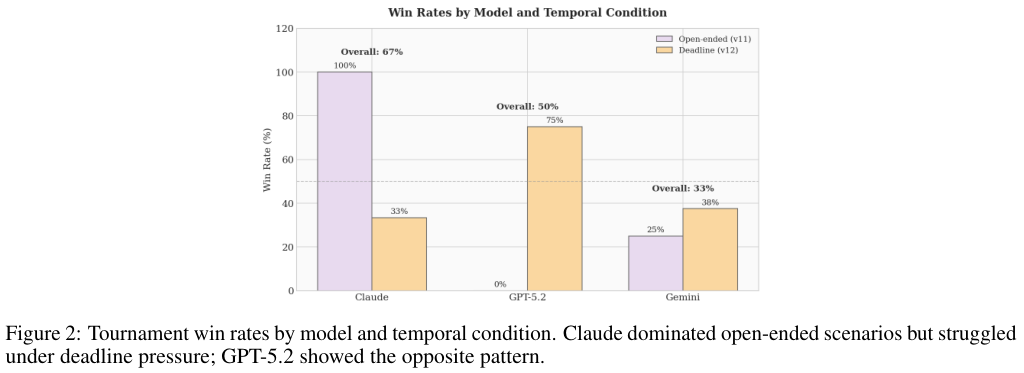 面对即将来临的死线GPT-5.2的胜率从零飙升至75%。Claude的胜率则断崖式下跌。