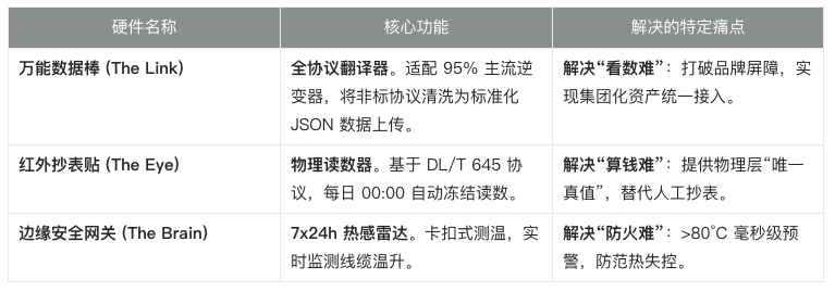 针对存量资产,我们坚持“零熵增”原则,即在不扰动原有电气秩序的前提下完成数字化升级。轨物科技推出“三把手术刀”硬件组合,采用磁吸、卡扣等非侵入式安装,仅需 30 分钟即可完成“微创手术”。