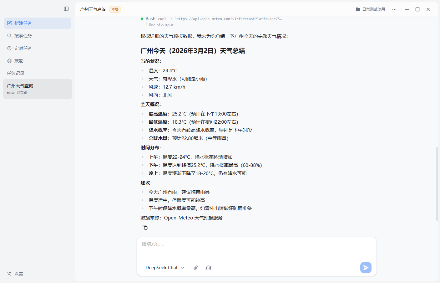 测试问一下今天广州天气