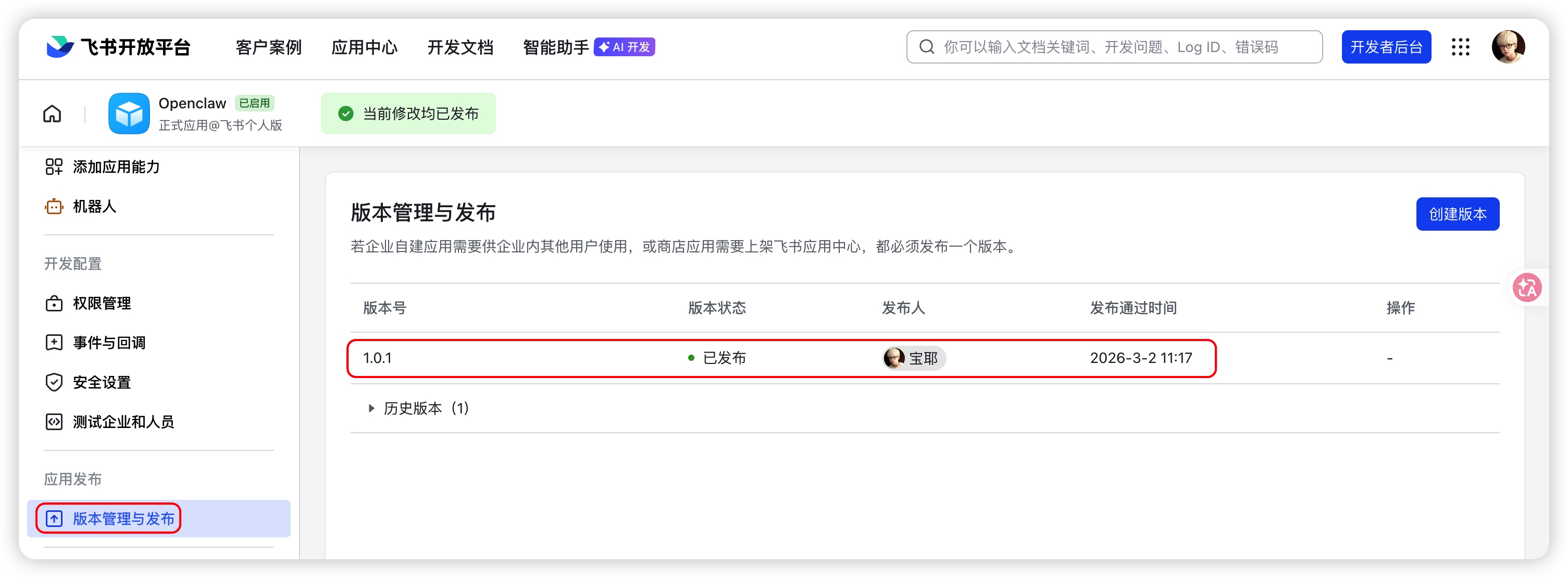 2.点击 “创建版本”