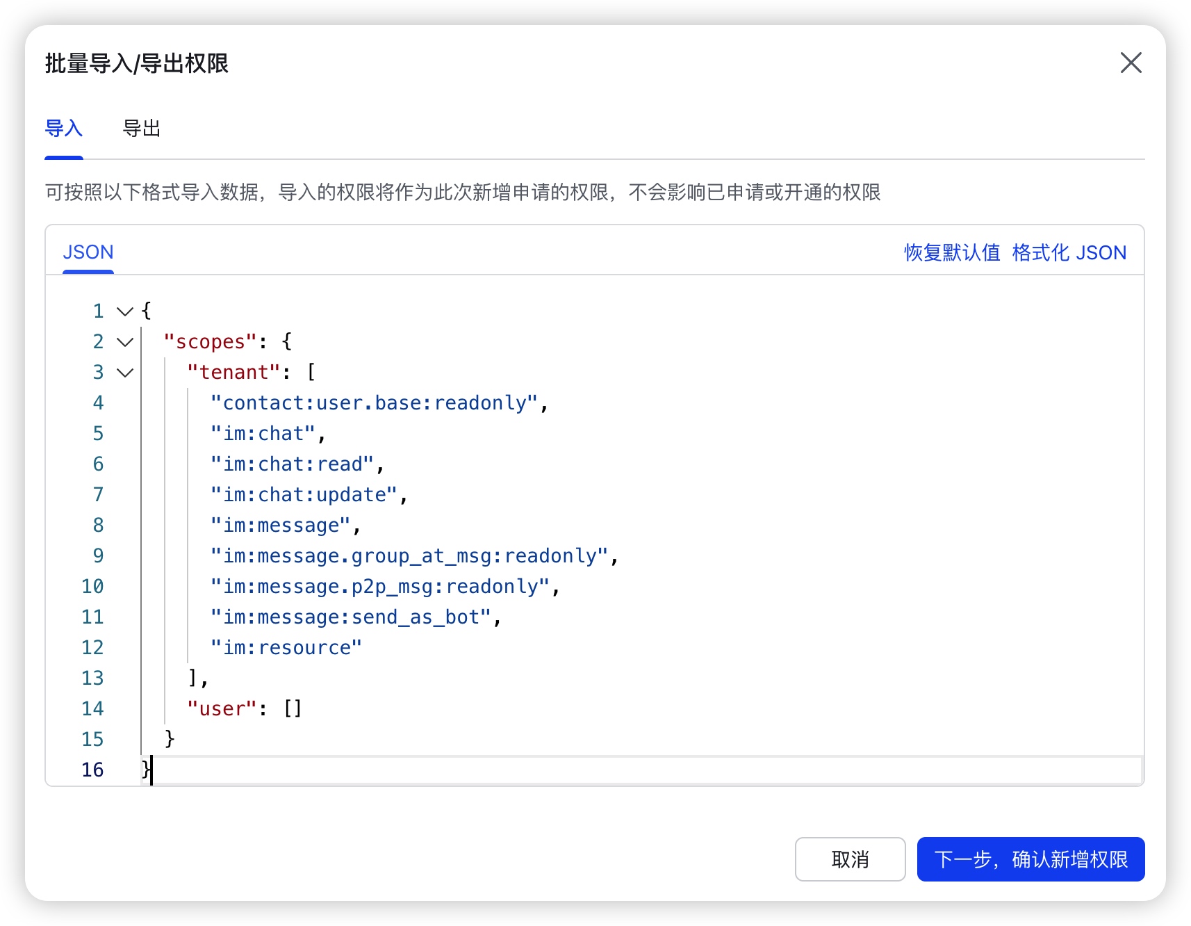 1.在应用详情页,点击左侧 “权限管理”
