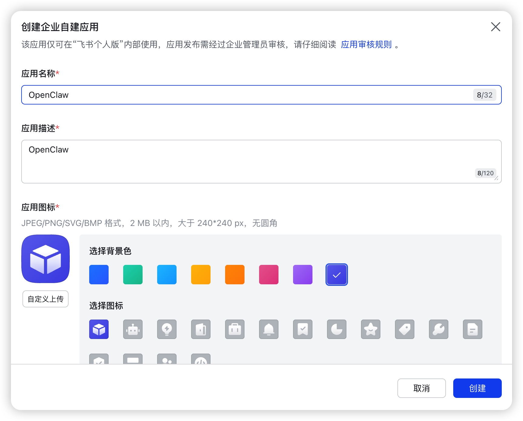 - 填写应用描述(可选)