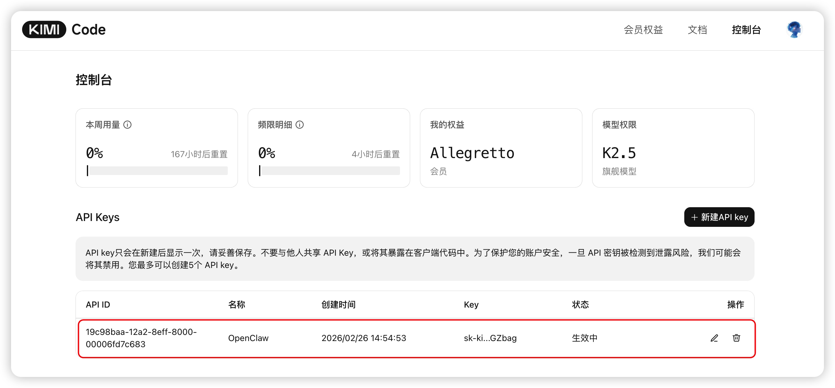 4.妥善保存生成的 API Key(注意:Key 只会显示一次)