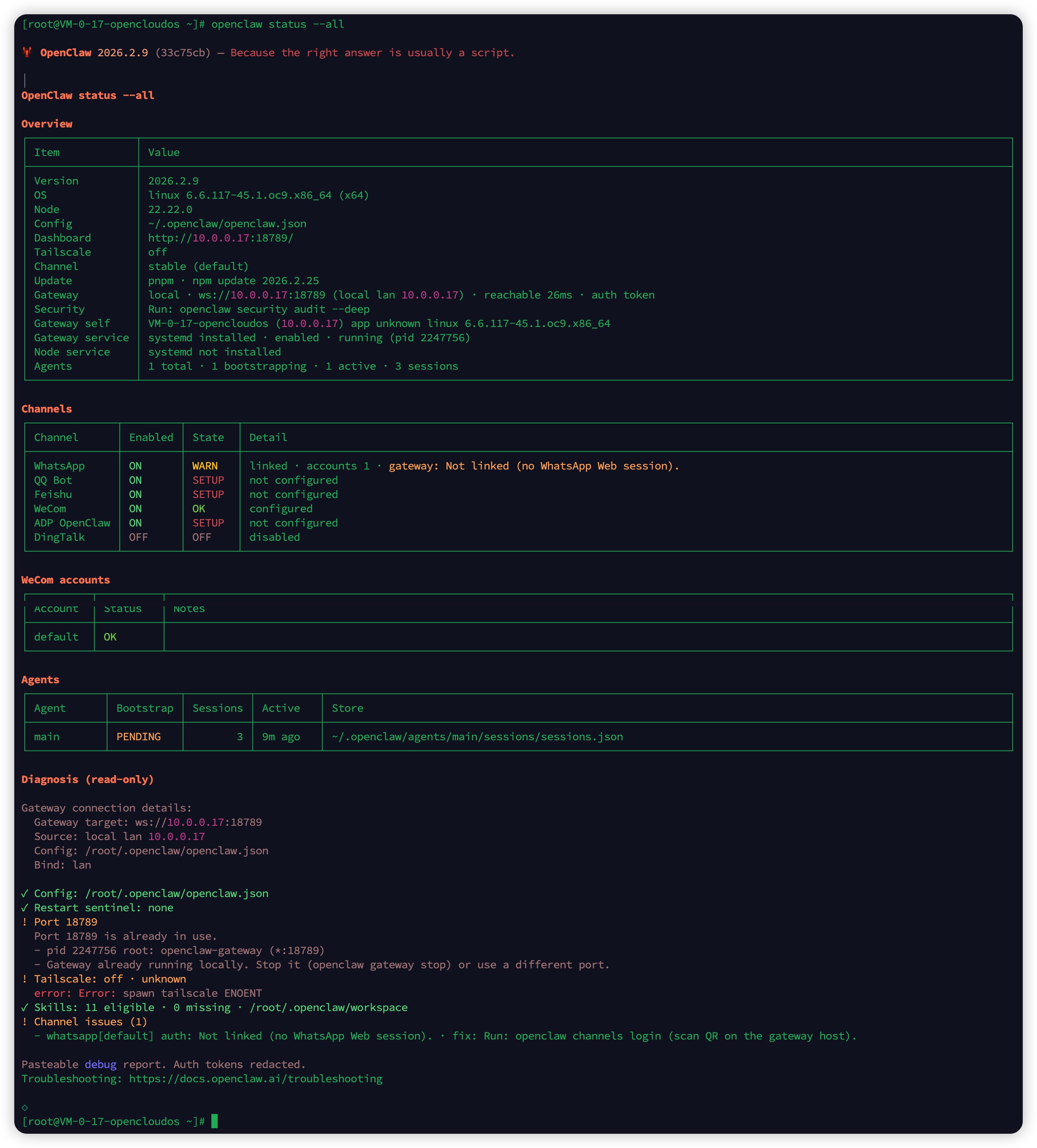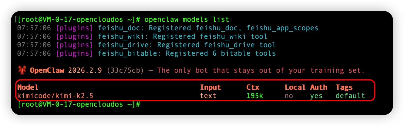[root@VM-0-17-opencloudos ~]# openclaw models list