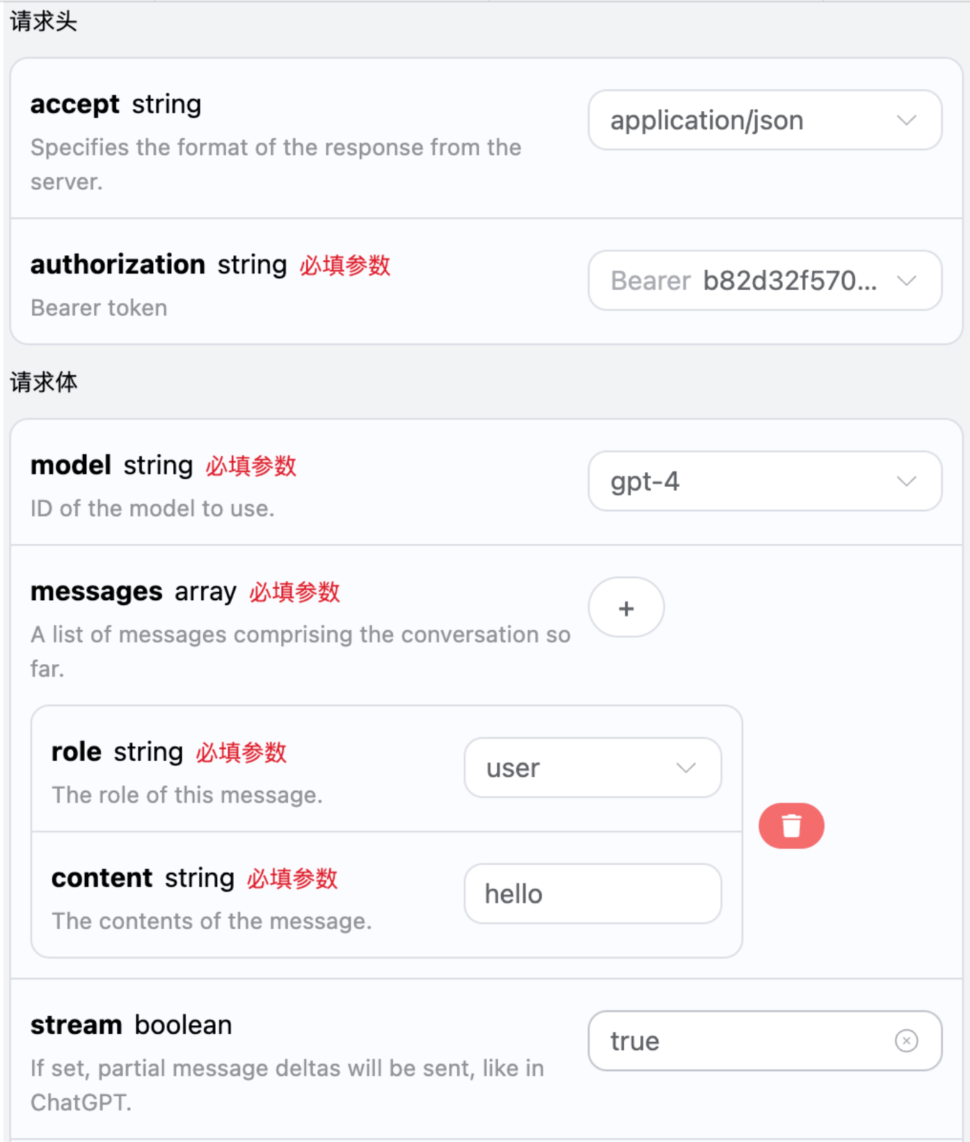 如果想流式返回响应,可以更改请求头里面的 stream 参数,修改为 true。