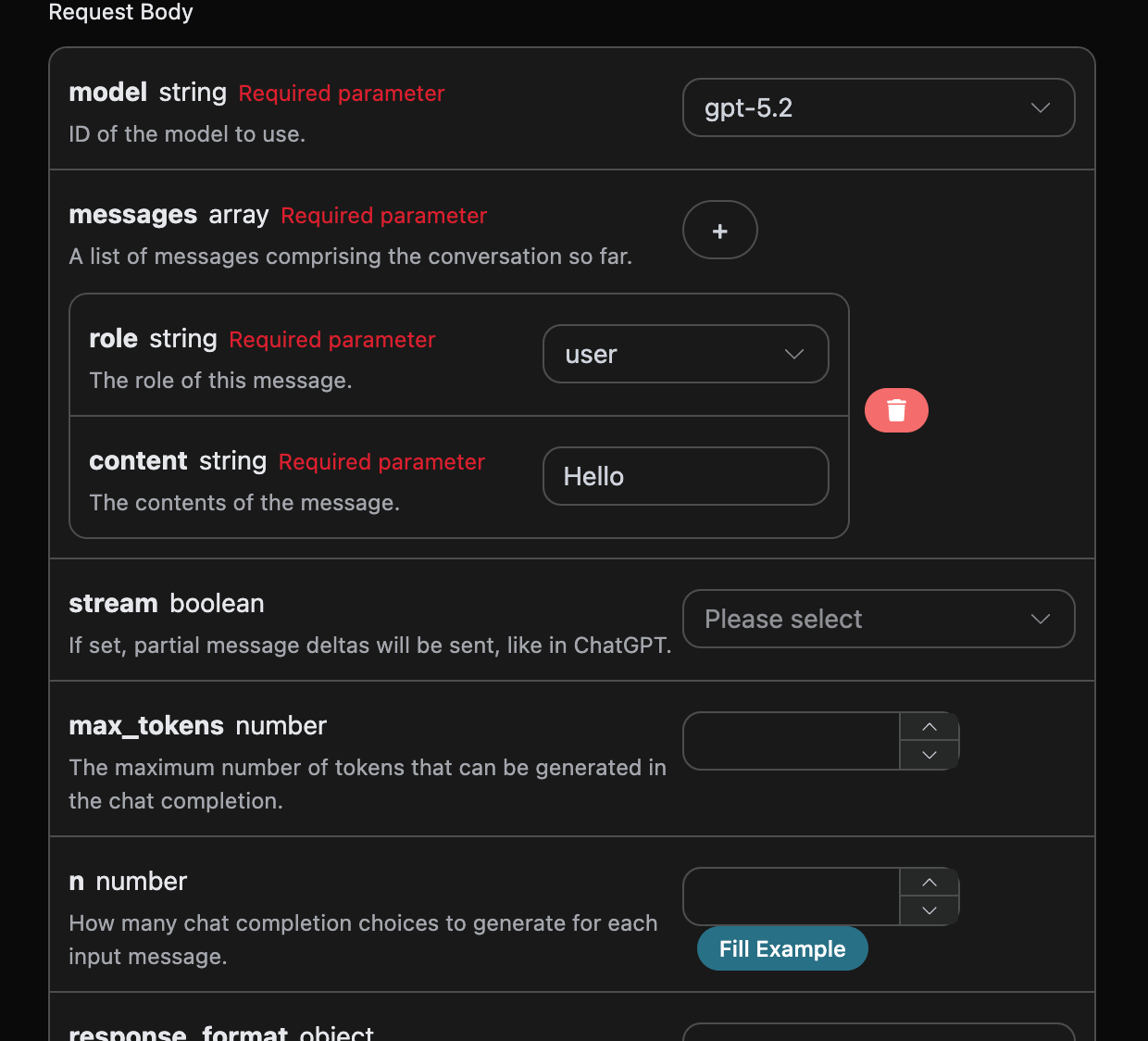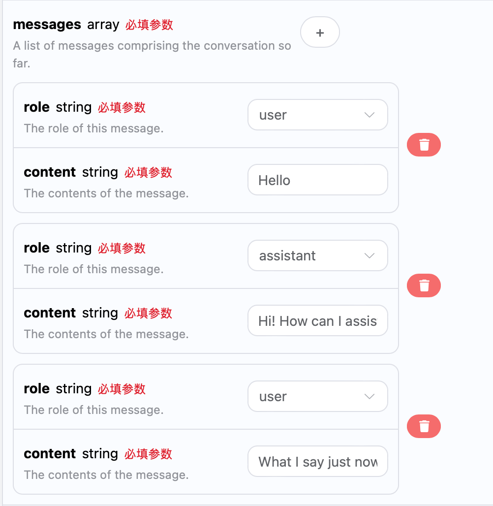 jsonObject.put("messages", [{"role":"user","content":"hello"}]);
