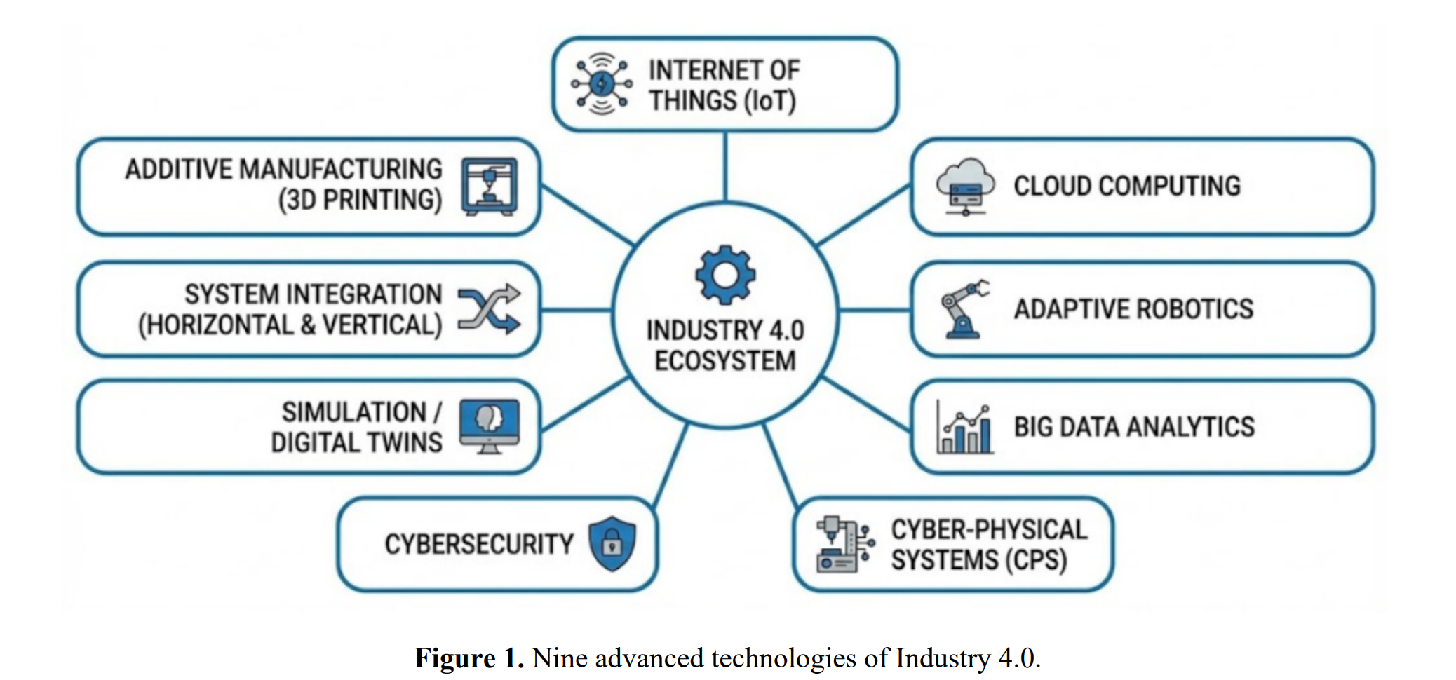 如图1所示,工业4.0的技术架构由九大核心技术支柱支撑,这些支柱共同推动智能、互联和自主制造系统的发展。这些支柱构成了数字化工业环境的基础,使其具备实时感知、智能控制和分布式决策能力。然而,这些使能技术并非孤立运作,其有效性依赖于无线传感器网络、射频识别(RFID)和实时定位系统(RTLS)等一系列底层技术,这些技术为持续的数据采集和通信提供了物理基础设施。