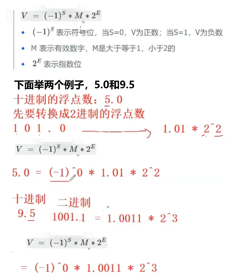 即指数E的计算值减去127(或1023),得到真实值,再将有效 数字M前加上第⼀位的1