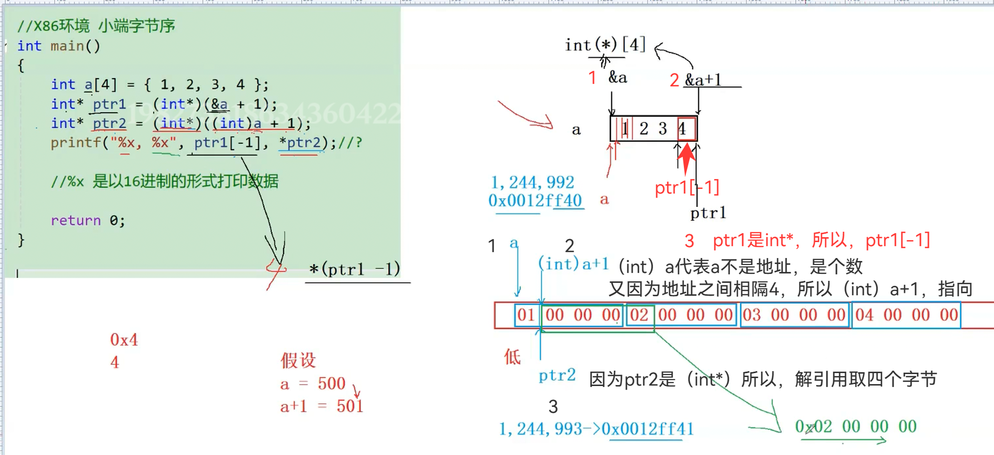 if (*(char*)&a == 1)//把a的地址转换为char*从而访问一个字节