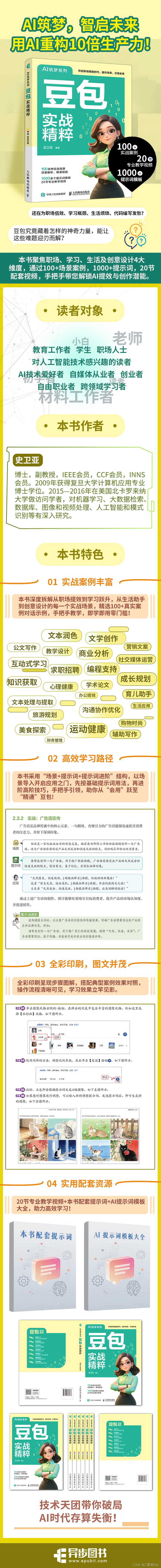 1.平台专项,内容丰富:本书专注于豆包平台,内容全面覆盖AI技术在日常、职场、学习等多场景的应用,满足读者多元化需求。