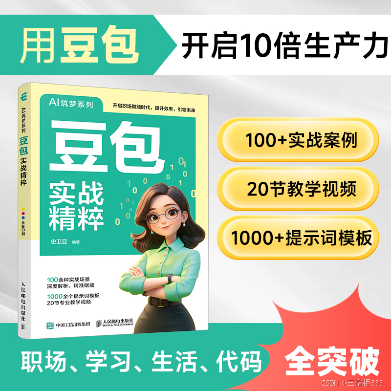 接下来给大家推荐一本关于豆包的书籍,这是一本关于豆包实战应用的干货图书,一经上市就登上了当当相关图书排行榜前列。本书从豆包核心功能解析讲起到实战应用技巧,助读者在各类豆包实战场景中高效运用、得心应手!另外,关注本文博主,点赞+收藏本文,且在本文评论区评论“入手豆包实战”,将选取三名幸运读者送出纸质版《豆包实战精粹》一本,截止时间:2026.03.28。入手《豆包实战精粹》传送门: https://item.jd.com/14507491.html 或者 https://product.dangdang.com/29933300.html ,个人觉得这本书非常的不错,是一本不可多得的好书,值得拥有去学习。