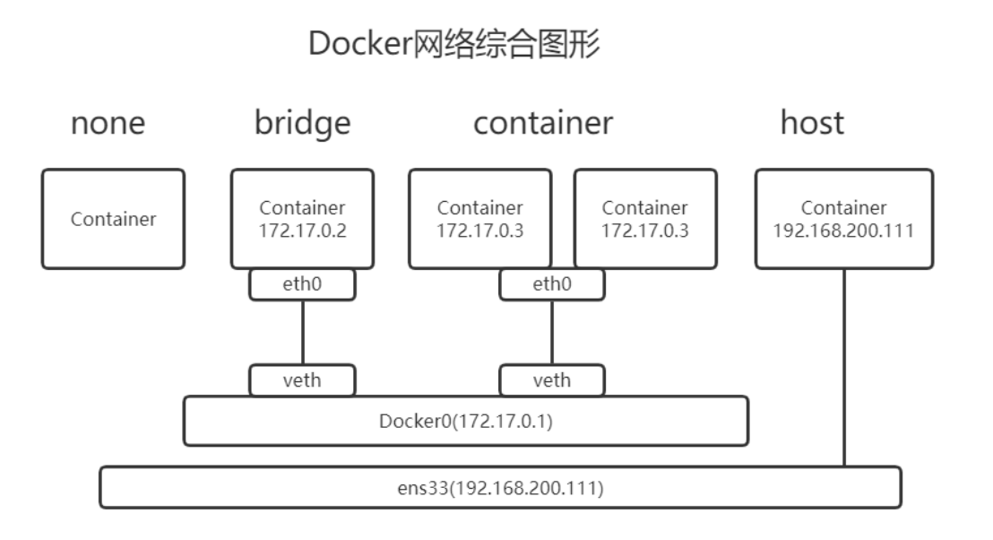 在这种模式下,Docker容器拥有自己的Network Namespace,但是并不为Docker容器进行任何网络配置。也就是说,这个Docker容器没有网卡、IP、路由等信息。需要我们自己为Docker容器添加网卡、配置IP等。