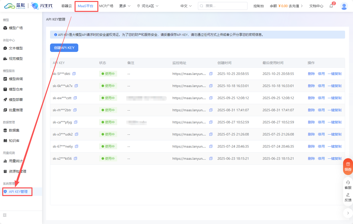 - 访问蓝耘 MaaS 控制台