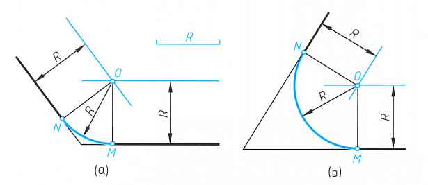 ③以O为圆心,以R为半径,在M、N之间画出连接圆弧。