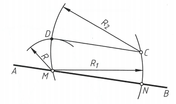 用半径为R的圆弧连接两已知直线