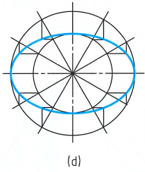 3、过大圆上的等分点作竖直线,过小圆上的等分点作水平线,坚直线与水平线的交点即为椭圆上的点;