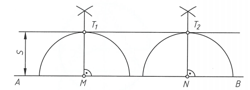 ①按已知距离作平行线。