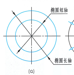 1、以椭圆中心为圆心,分别以长轴、短轴长度为直径,作两个同心圆;