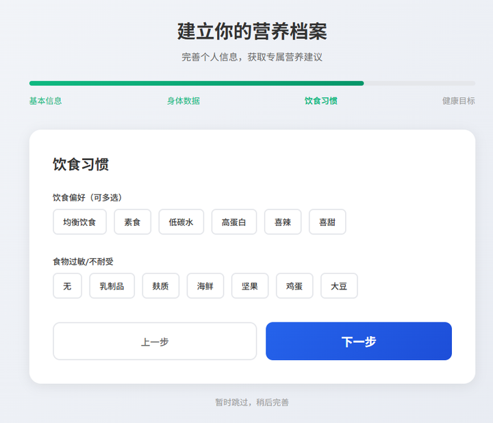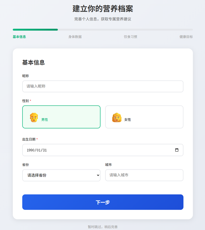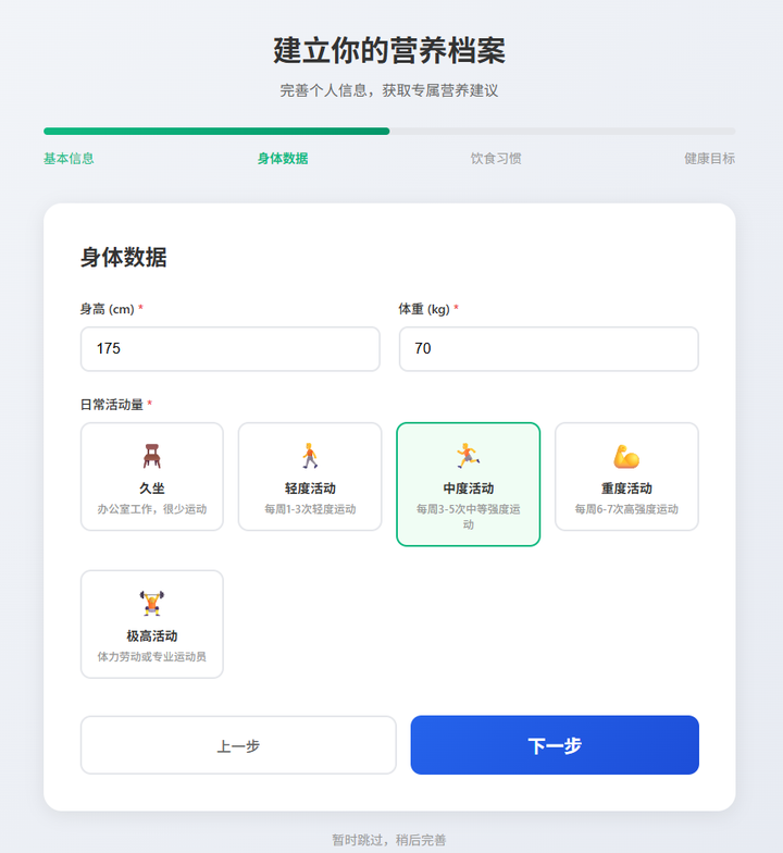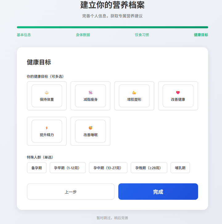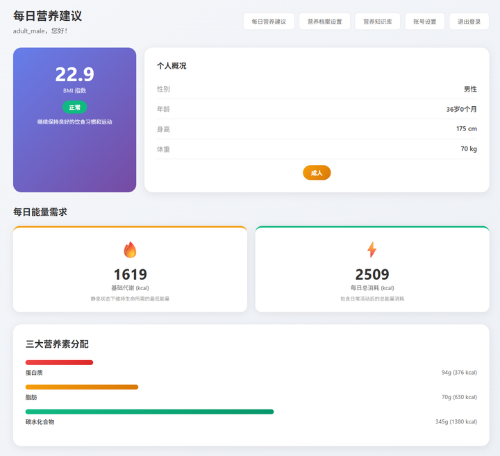 于是,张小白把前期系统设计的重点放到 ”营养档案设置“”每日营养建议“这几个功能模块上了。