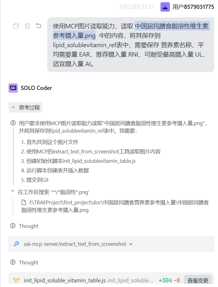 EasyVibe初级组队学习课程即将收官,学员张小白完成了"随身营养师"项目实战。该项目基于AI IDE工具Trae开发,重点构建了营养档案设置和每日营养建议功能模块。项目亮点包括:1)利用GLMCodingPlan的MCP服务处理专业营养术语图片;2)通过AI辅助完成营养数据的精确录入;3)实现了用户管理、知识库管理、营养档案设置等核心功能。系统可计算用户每日各类营养素需求,
