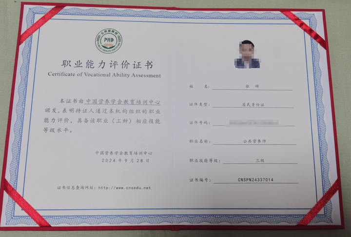 正如大家在知乎上看到的,张小白是有一张”公共营养师三级“的证书的: