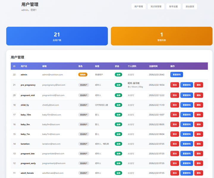5、用户功能:营养档案管理