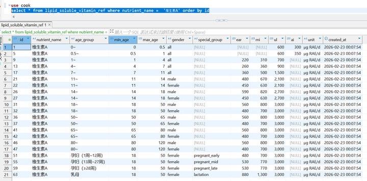 但是,目前还是在灌数据的阶段。(还有好多动植物的营养素参数没导入呢。。。),所以只能先做到这里了。