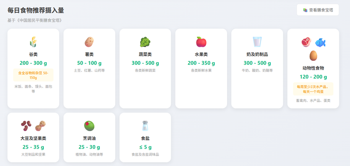 每日食物的摄入量推荐: