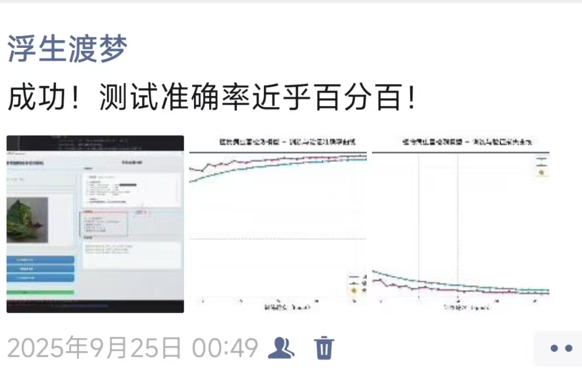 于是,我开始了我的创业之路,拉上几位志同道合的同学(有学计算机的,也有像我一样“跨界”的),正式启动“慧农”项目。目标很明确:开发一个轻量级、高精度、可端侧部署的作物病虫害检检测系统加智能农业管理平台,未来能跑在无人机或巡检机器人上,实时守护农田。出乎意外的是,我们的理论模型效果并不是很差,可以说是具体的行业换数据集训练就可以。