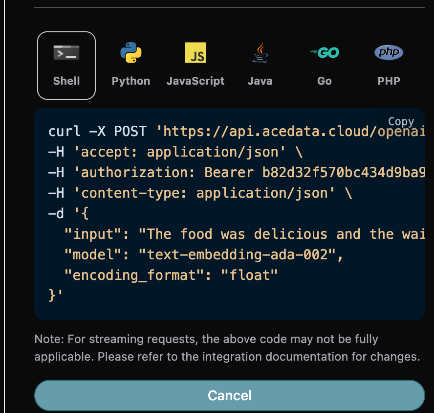 url = "https://api.acedata.cloud/openai/embeddings"